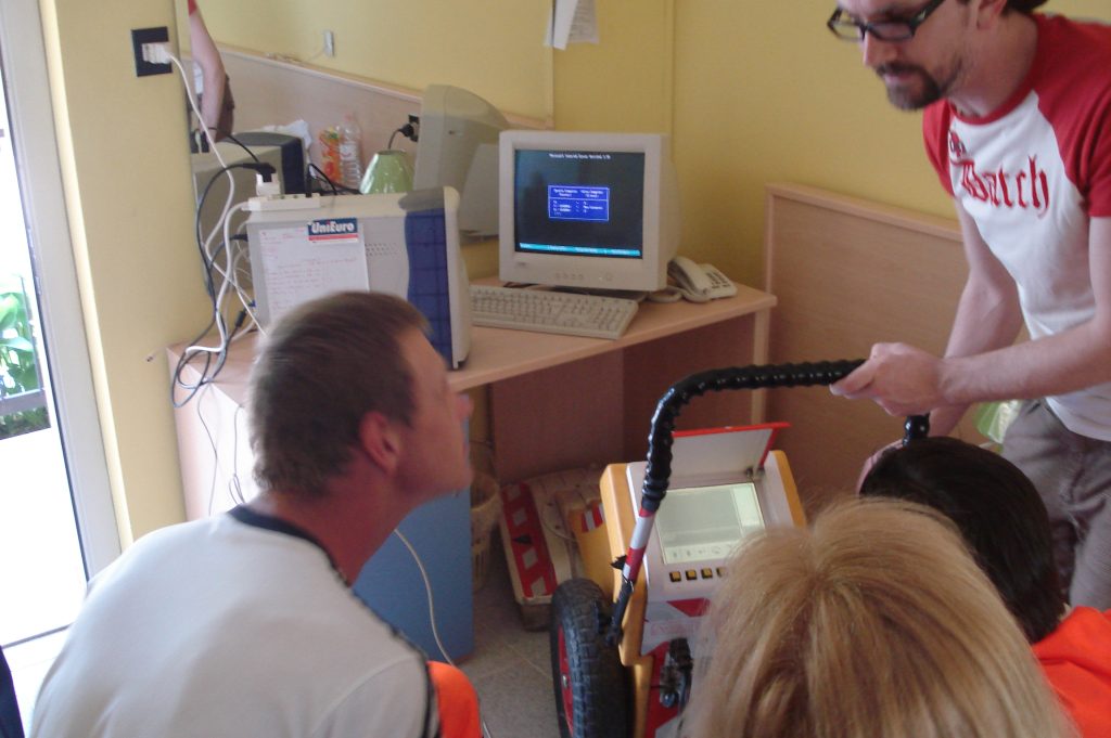 L’esperienza della SCANGEA nel georadar inizia nel 1995 quando l’ Ing. Luigi Cesare Speranza acquista a Godalming, Inghilterra, il georadar Emrad Pipehawk Mk1, che era al tempo il più avanzato sul mercato (ed è ancora oggi attuale per la sofisticazione dell’antenna e del software, capace di estrarre automaticamente dai dati primari del rilievo le immagini dei servizi, sia in sezione che in planimetria). Il corso di training a Godalming fu seguito dall’Ing. Speranza e dai suoi collaboratori, Arch. Cristina Speranza e Geom. Stefano Bergonzi.